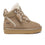 The UGG Lace Up Ankle Platform Sneaker combines sporty style with premium materials for lasting comfort and support. Its durable cow suede and fabric upper ensures structure and breathability, complemented by wide patterned laces for a distinctive look. Inside, a soft sheepskin wool insole provides natural cushioning and warmth, while the canvas lining keeps the shoe lightweight and comfortable. The thick EVA sponge sole offers shock absorption and subtle height elevation. A higher ankle collar delivers extra coverage and a secure fit. Available in Chestnut and Sand, Samir makes an ideal gift for those seeking both style and function.
